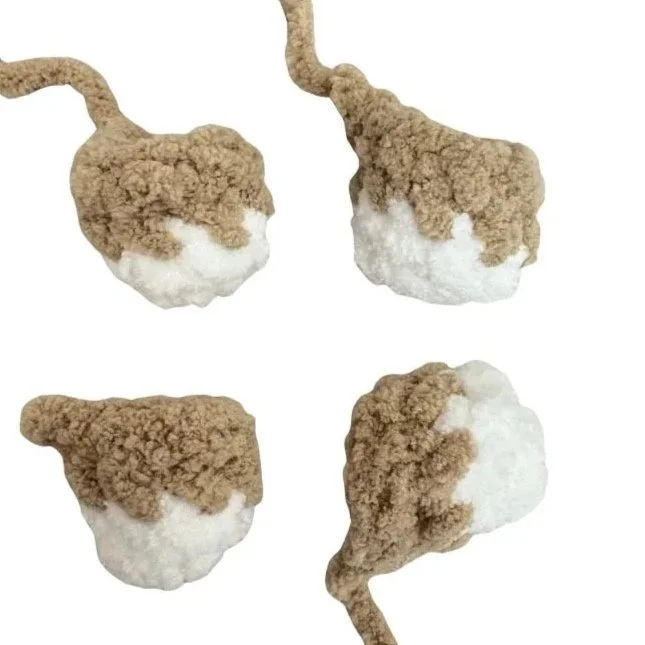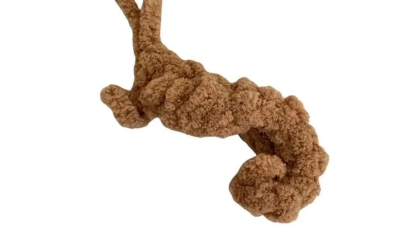 For this horse, I used Premier Basix Chenille Brights yarn. I believe the yarn color names are Steel Cut Oats, Caramel, and White