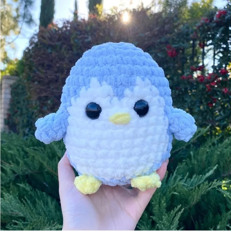 While I do get some harder-to-find yarn colors off of Amazon (the ones linked on my storefront), I do also get a lot of my yarn from Yarnspirations! The colors that I used for the penguin in the sample photo is Baby Blue, White, and Buttercup by Bernat Blanket.
