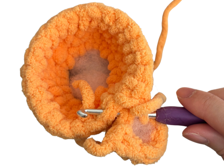 Hide the yarn tail inside or you can use it to help sew closed any gaps between the tail and the body later. We’ll be attaching the tail during R14 and 15 of the body.