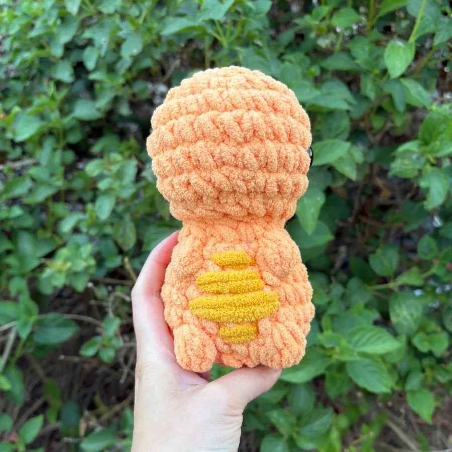 The head and body are crocheted as one continuous piece.